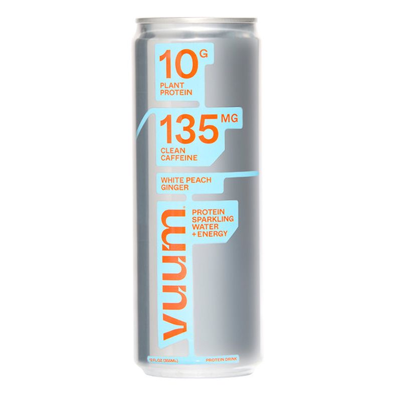 Vuum Protein Sparkling Water + Energy, White Peach Ginger