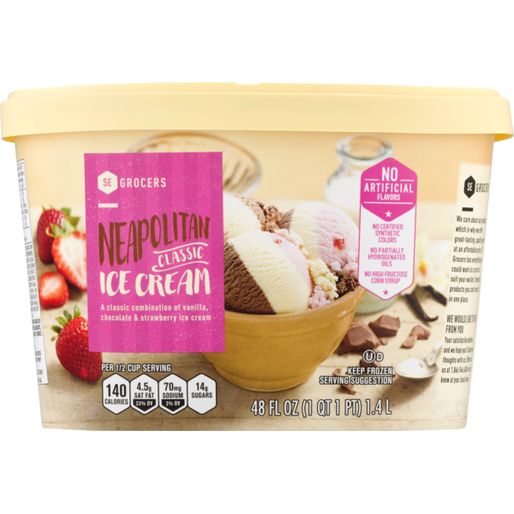 The ingredients include milk, cream, sugar, corn syrup, whey, and natural vanilla flavor. Always check the label for specific allergen information. Customers love SE GROCERS Classic Ice Cream Vanilla because it's a reliable and delicious choice that never disappoints. It's perfect for any occasion, from a casual weeknight dessert to a special celebration. The rich vanilla flavor is both comforting and satisfying, making it a favorite among people of all ages.
